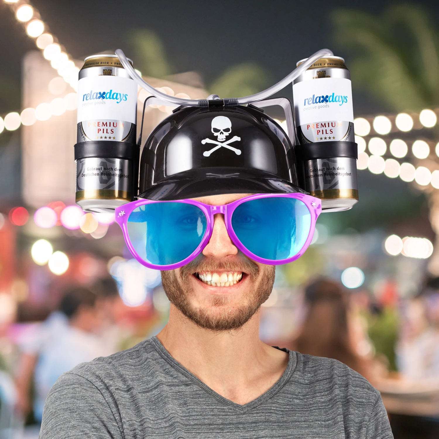 Auf jeder Party gilt ab sofort Helmpflicht! Egal ob Karneval, WG-Feier oder Malle-Urlaub – der Piratenhelm mit Trinkschlauch stellt eine ausreichende Versorgung mit Flüssignahrung sicher und zieht die Blicke aller Anwesenden auf sich. So wird der Helm schnell zum Spaß-Highlight, das jeder mal auf dem Kopf tragen möchte.