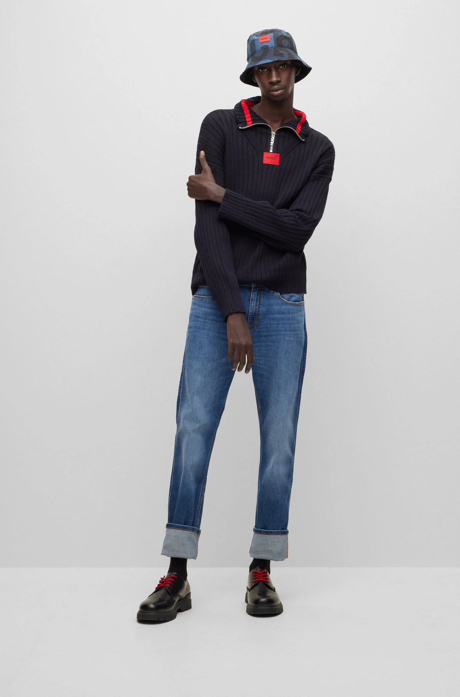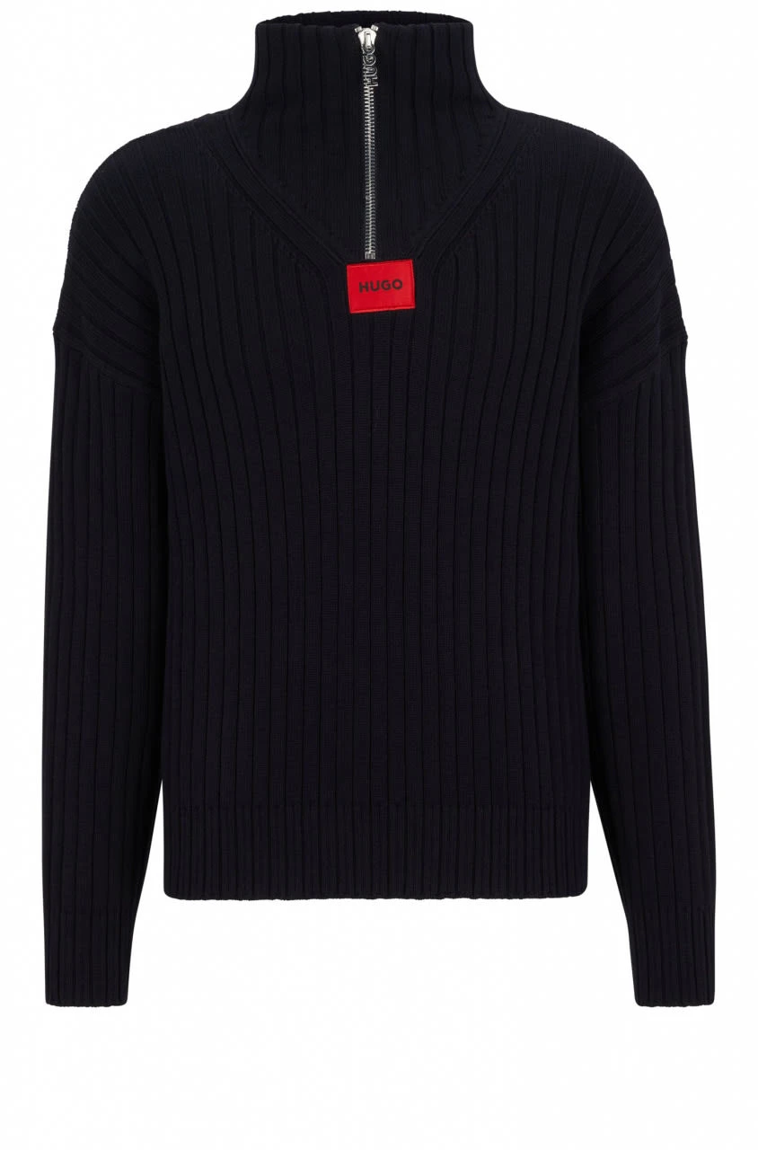 Zeitgemäßer HUGO Pullover mit lockerer Passform – ideale Wahl für deinen Layering-Look. Der Herren-Pullover ist aus Baumwolle mit Woll-Anteil gestrickt. Der Reißverschluss am Kragen wird durch V-förmige Nähte und ein rotes Logo-Etikett zur Geltung gebracht. Relaxed Fit Troyer Lange Ärmel Pflegehinweise: Bleichen Nicht erlaubt, Bügeln geringe Temperatur, Schonend reinigen mit Perchlorethylen, Schonend waschen bei 30 °C